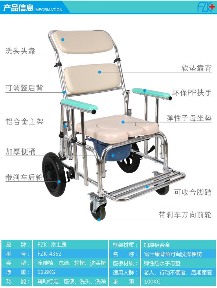FZK-4352 背角扶手(shǒu)可調洗澡便椅